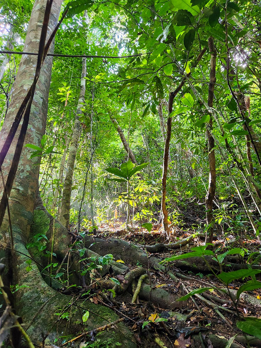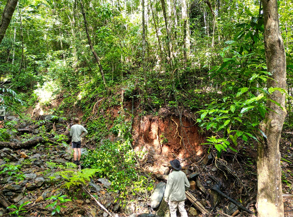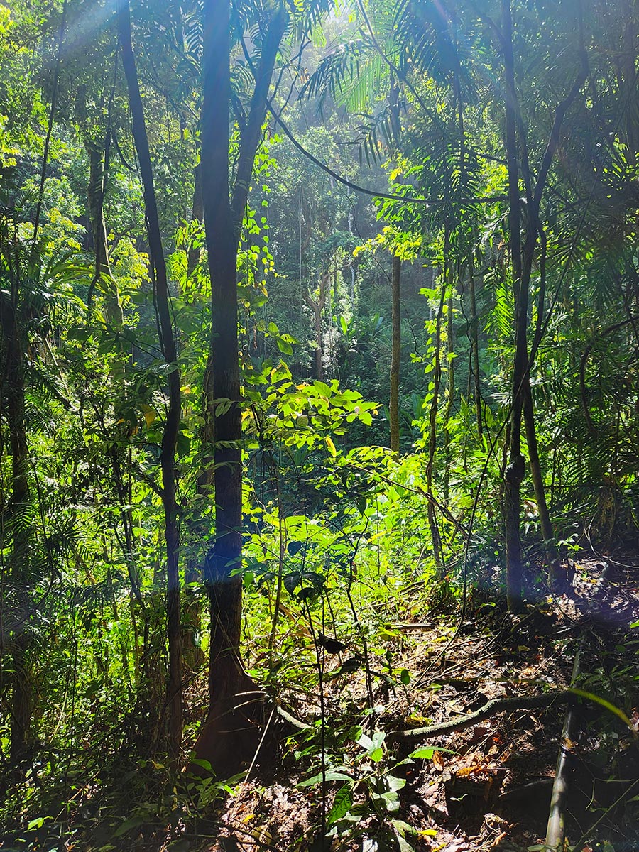 Lot 8’s terrain is tricky to navigate, quickly rising up into the higher areas within the Wet Tropics World Heritage boundary. Seasonal creek beds indicate that adverse weather will move through here at speed–cleared top soil easily could end up in the Bloomfield River. This is a fragile area, sandwiched between the edge of the World Heritage area and a developed site where the rainforest has been cleared. In fact, the clearing resulted in a landslip on both properties, hence why Lot 8 is ‘almost’ pristine rainforest. Now that we are successful in protecting this property we will restore the damaged areas back into natural habitat.